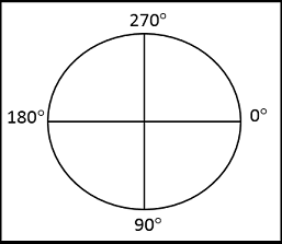 To move objects with an applied force, you will need to specify an angle. The picture below illustrates how GDevelop understands the angle of rotation.