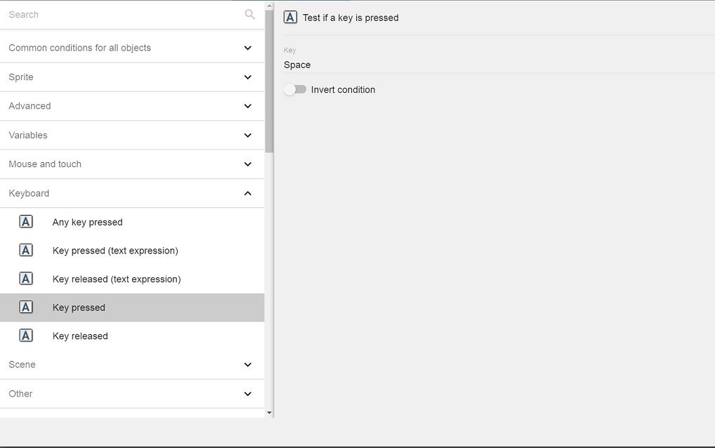 • In the Key field, type Left and click OK. This condition is true if the player presses the left arrow on the keyboard.