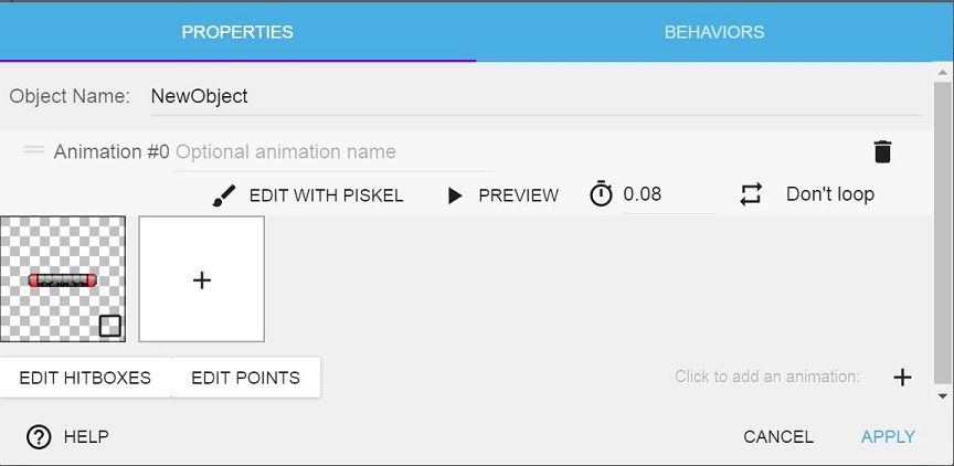 • Name this object Brick. Give it three separate animations using the brick-green.png, brick-red.png and brick-yellow.png files from your project folder. Name the animations accordingly.