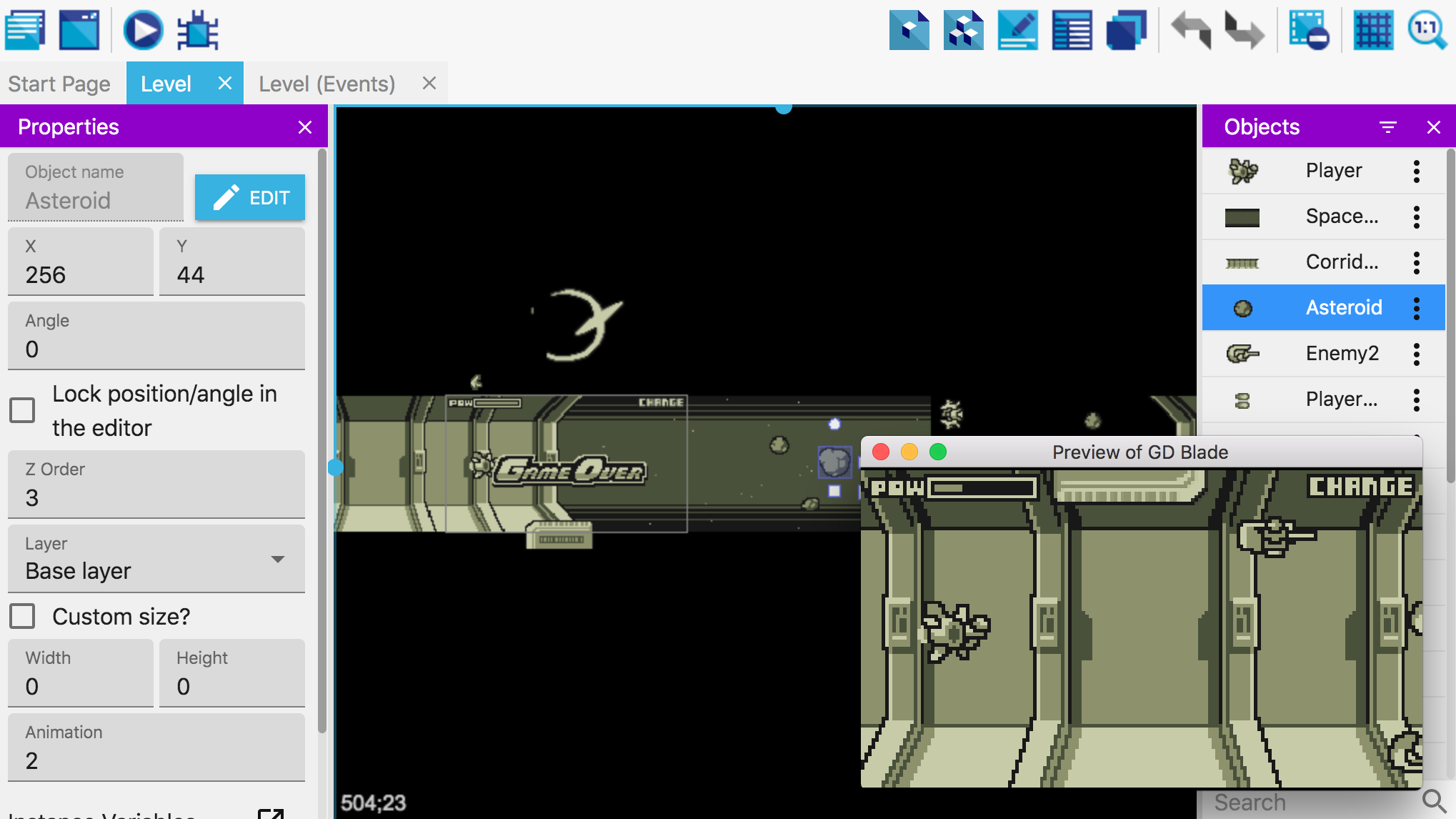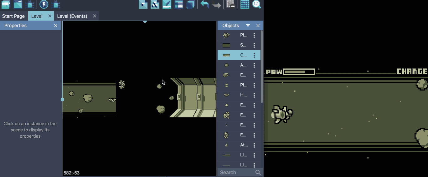 これはゲームの何かを微調整するときに特に便利です。たとえば何かのエフェクトのパラメーターや、オブジェクトに追加したビヘイビアのプロパティを変更して、その結果をすぐに確認できます。またプレビューを最初からやり直さずに、イベントがどのように動作するかをチェックするときにも役に立つでしょう。