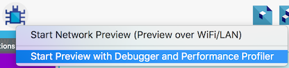 デバッガーとプロファイラーを有効にしてプレビューを起動する