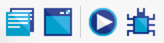 左から順にプロジェクトマネージャーボタン、エクスポートボタン、再生ボタン、デバッグボタンです。